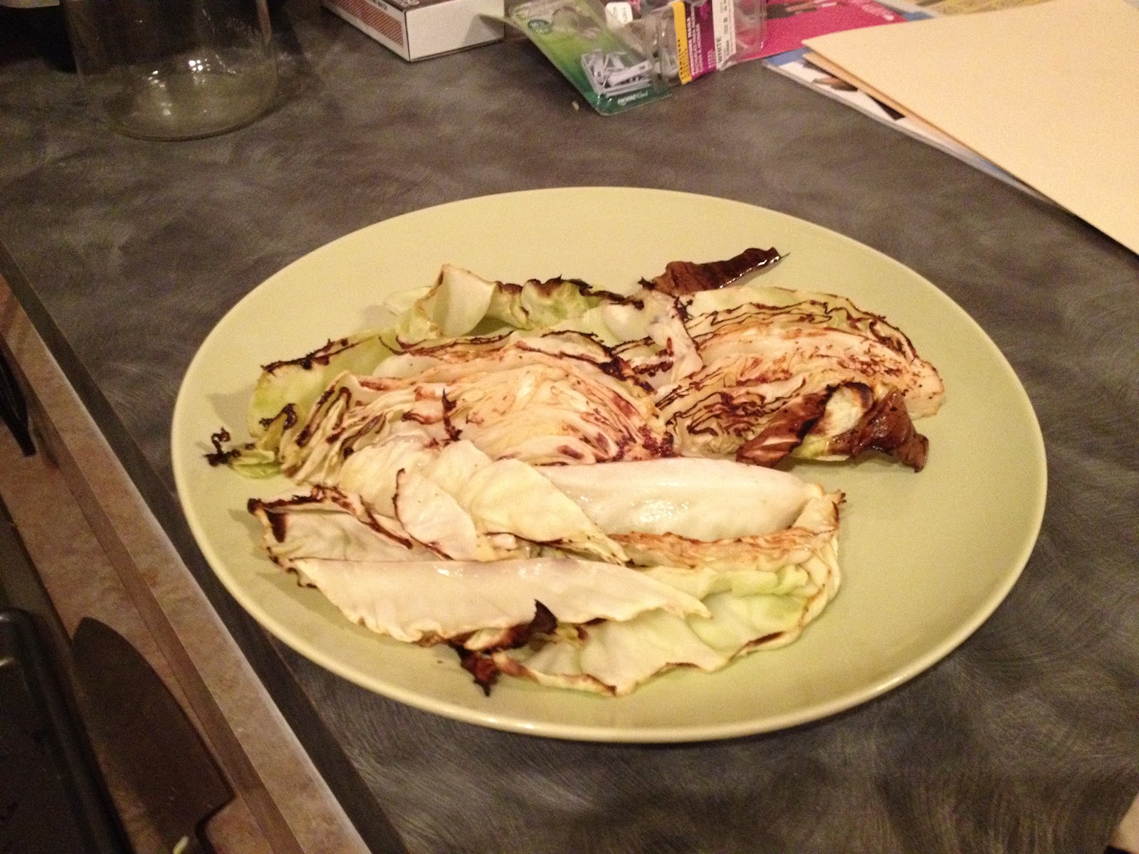 As for the roasted cabbage it was AMAZING. I seem to forget how much I like cabbage. I found it via Budget Bytes. I have also linked the recipe several times lately but basically you cut the cabbage in half and then in wedges from there (keep the core intact so that it doesn't fall apart in the oven). Then generously brush some light caesar dressing all over the wedges. And make sure to use a NON-creamy dressing (like a vinaigrette). You'll bake/roast the cabbage at 425 degrees and half-way through flip the wedges. I made this twice last week and the first time it was a tad crispy (I waited 15 min to flip and then only cooked them 10 min after the flip). The second time I cooked them for 20 min total. I think 20-25 min is the best but you can judge for yourself (and it depends on how big you cut your wedges).